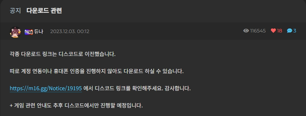 + 게임 관련 안내도 추후 디스코드에서만 진행할 예정입니다.
